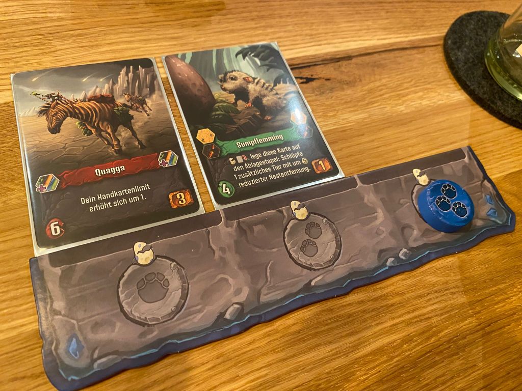 Schlüpfen: Eine Tierkarte ausspielen, um ein Tier auf dem Tableau schlüpfen zu lassen.