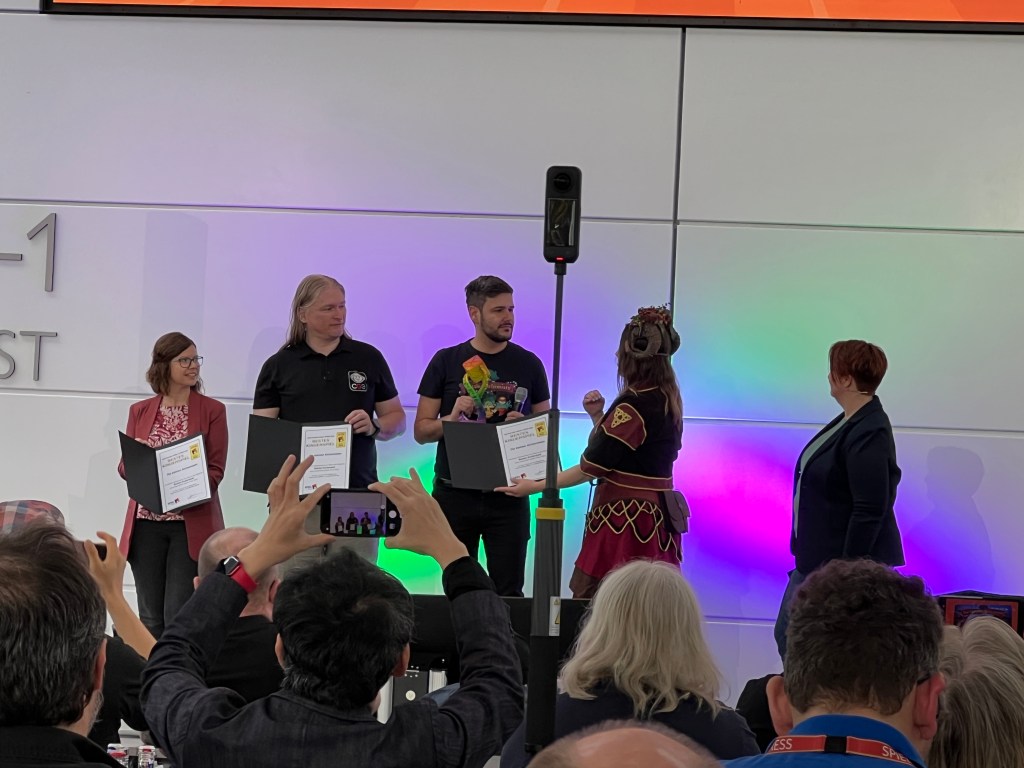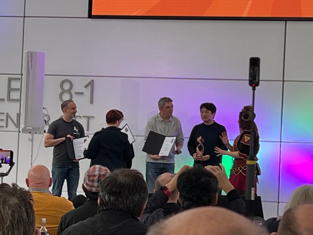 Nachdem dieser Teil besprochen wurde, durfte sich Mháire vorstellen. Sie wirkte direkt sehr sympathisch und authentisch. Ihre Aussage, dass sie bereits seit 20 Jahren die Messe besucht und tief in der Thematik steckt kam direkt gut an. Wie sie bei der Preisverleihung aufgetreten ist und welche Fragen sie zu den Spielen gestellt hat, haben das auch sehr gut untermauert. Zudem hält sie an Universitäten Vorlesungen über Rollenspiele. Spannend was es alles gibt und wie schön man das rüberbringen kann. Das haben wir auch schon anders erlebt…