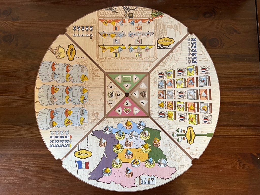 In Fromage versuchen wir als Käseproduzenten im Frankreich des frühen 20. Jahrhundert unseren Käse möglichst gewinnbringend einzusetzen. Ein bis vier Spielende kämpfen darum in einem recht simplen Worker-Placer der erfolgreichste Käseproduzent zu werden.