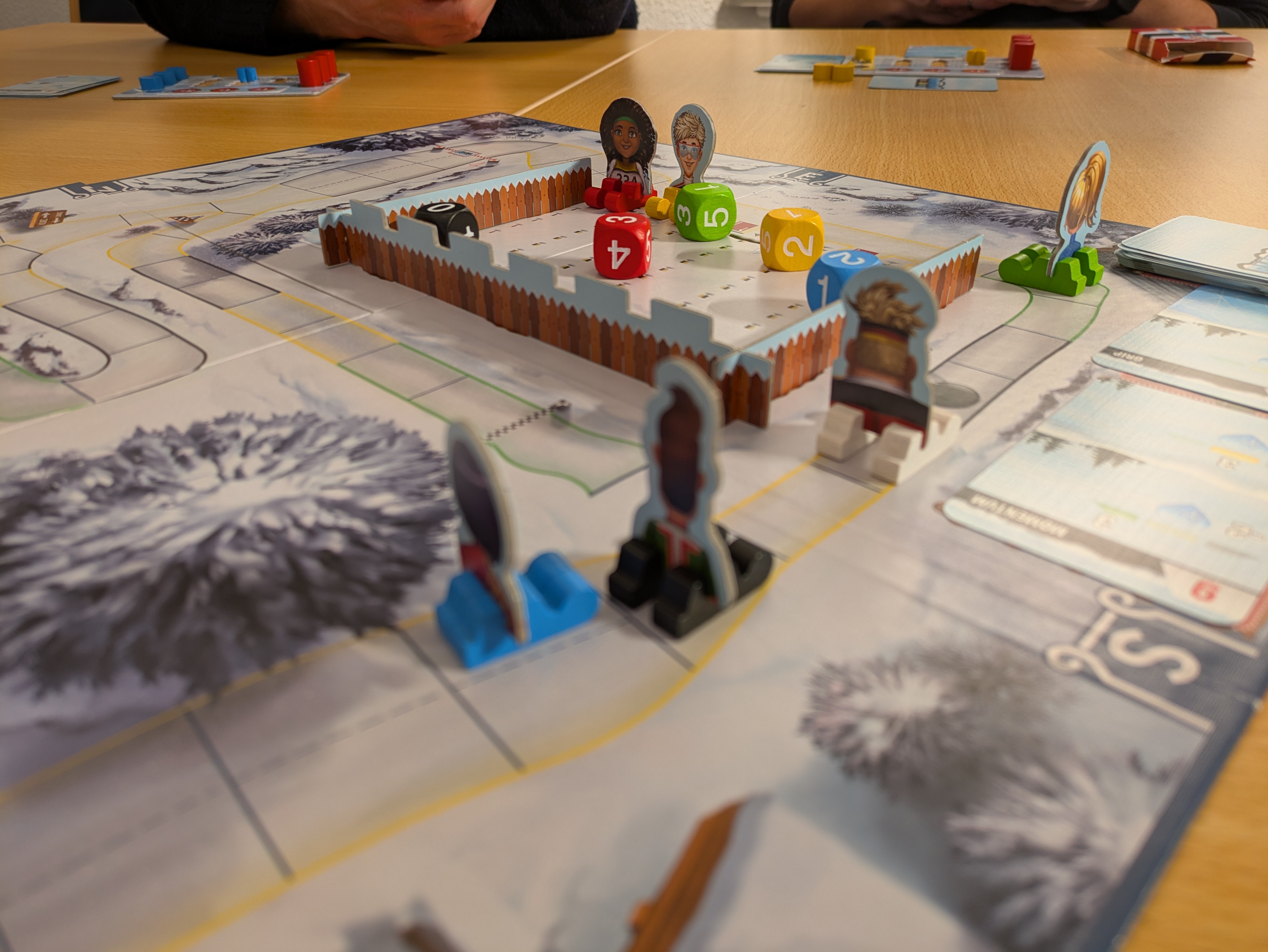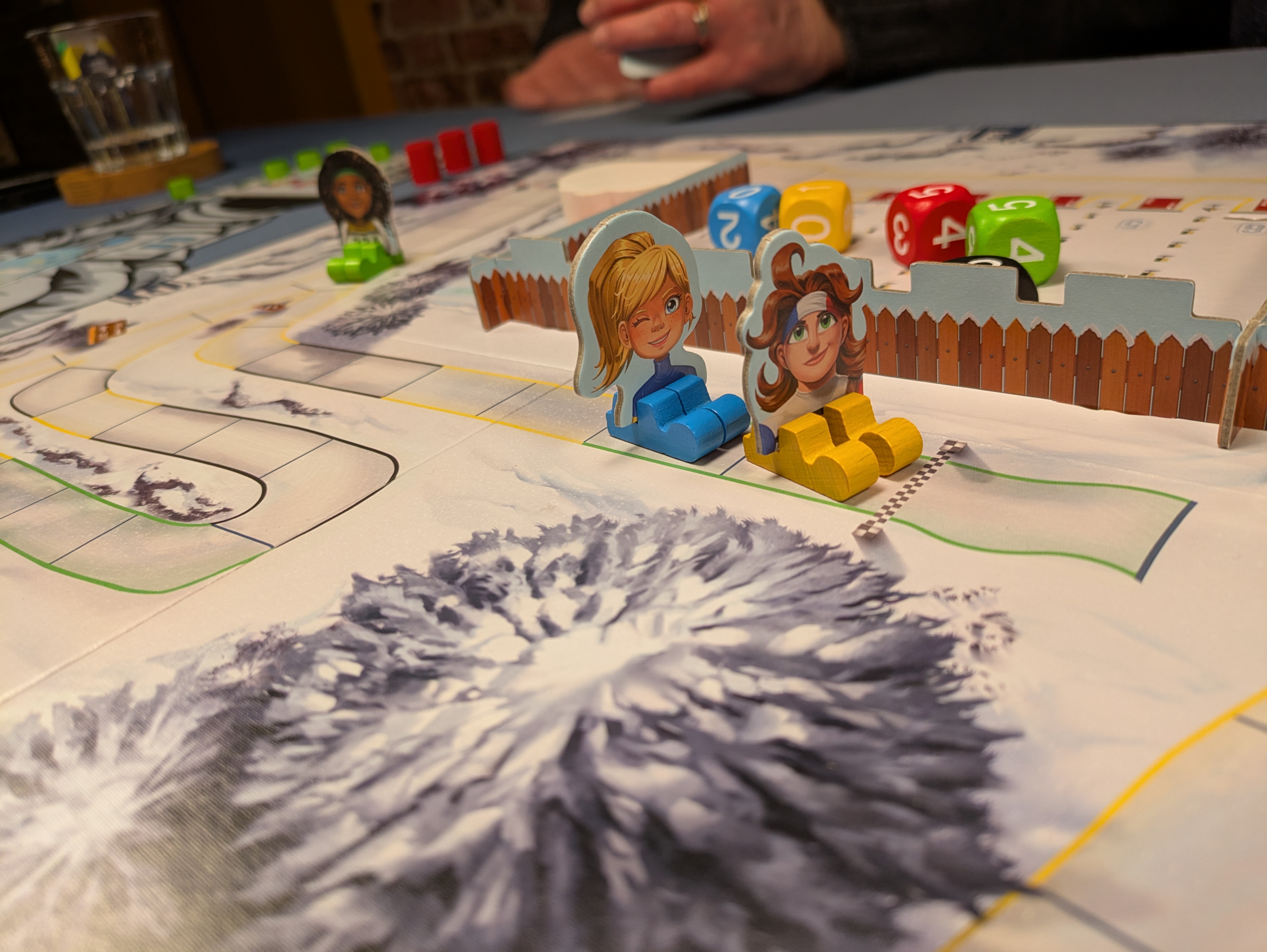 Wenig reiz entfaltet das Spiel jedoch in geringer Besetzung. Besonders zu zweit ist hier zu wenig los. Klar, es funktioniert. Aber ohne andere, die einen blockieren oder auch mal Windschatten geben fehlt etwas. Selbst die eine Person mehr im Spiel zu dritt merkt man deutlich. Wirklich spaßig wird es meiner Meinung nach erst zu viert und selbst zu sechst ist es schnell gespielt. Kennen es alle, haben wir unser Rennen in einer Stunde erledigt. Mit ein paar Neuen dabei werden es aber auch nicht mehr als kurzweilige 90 Minuten.