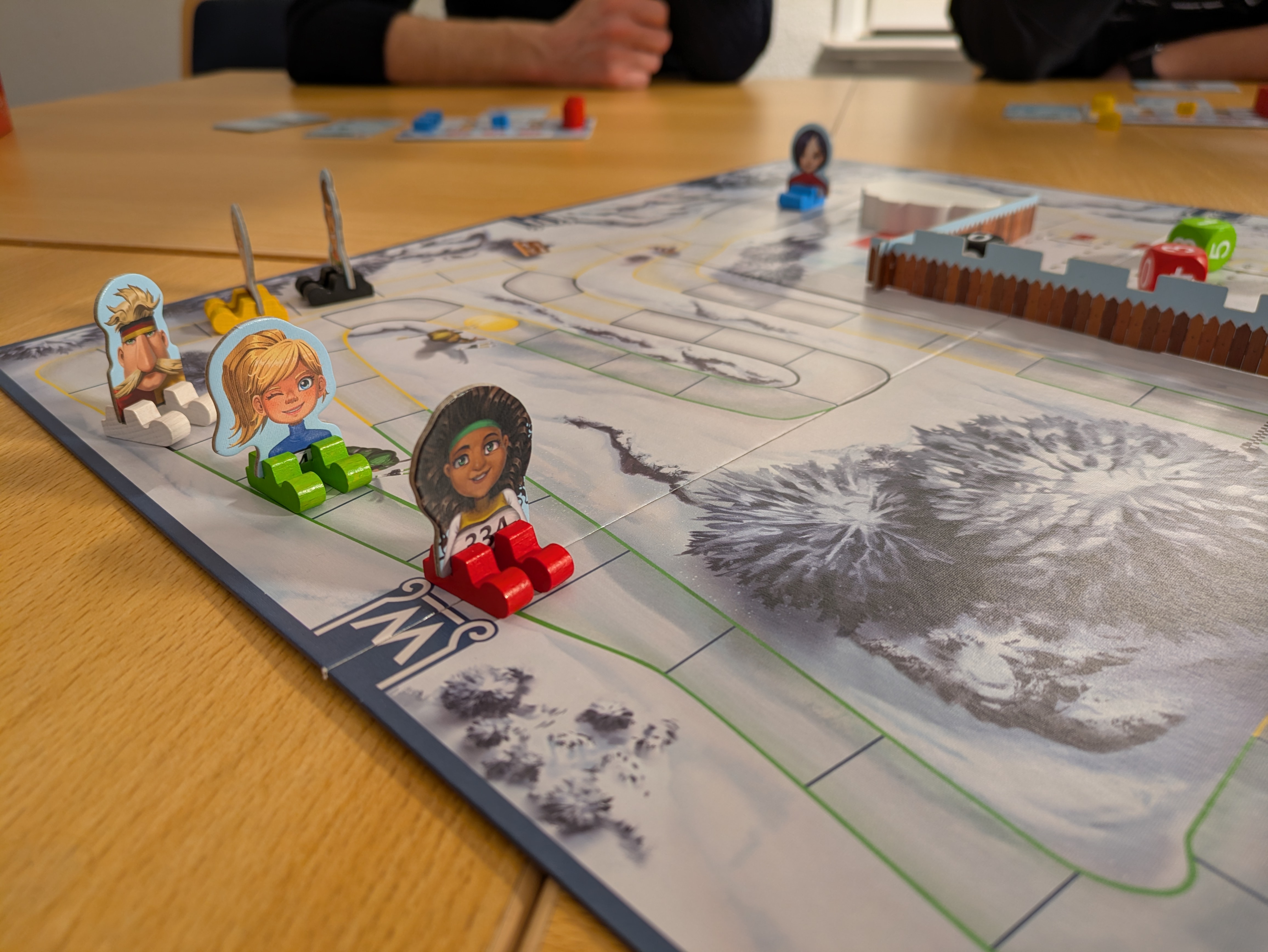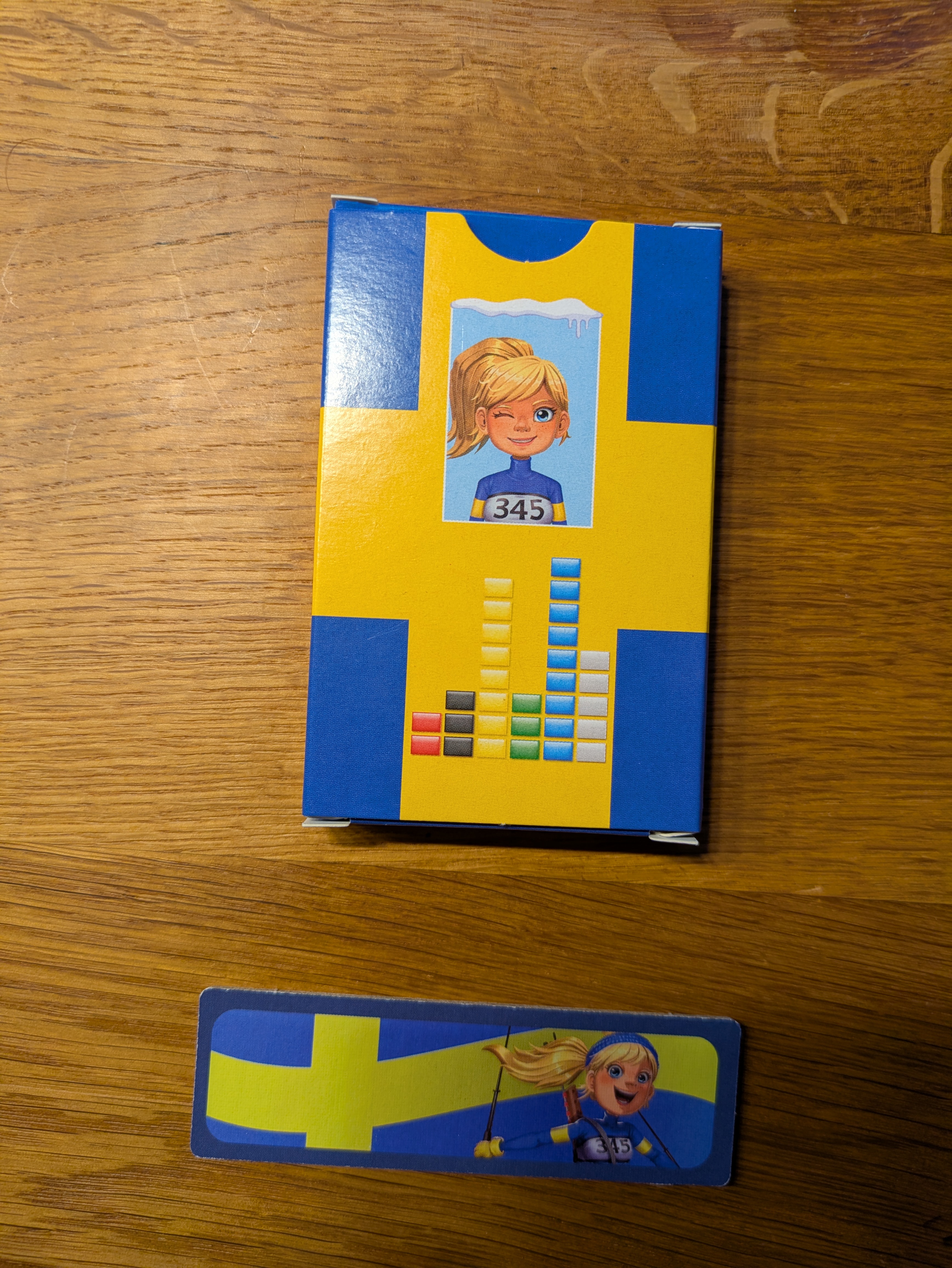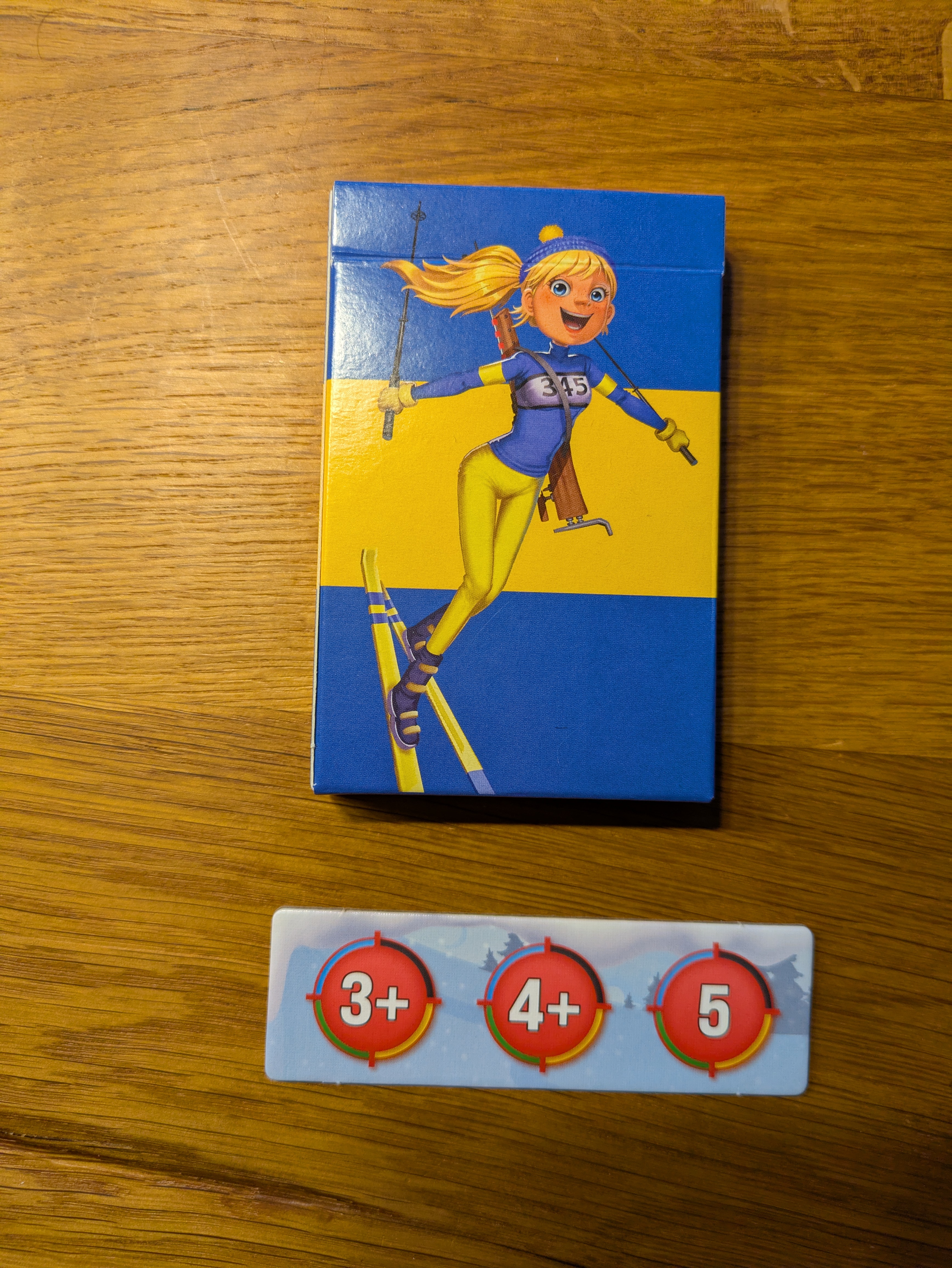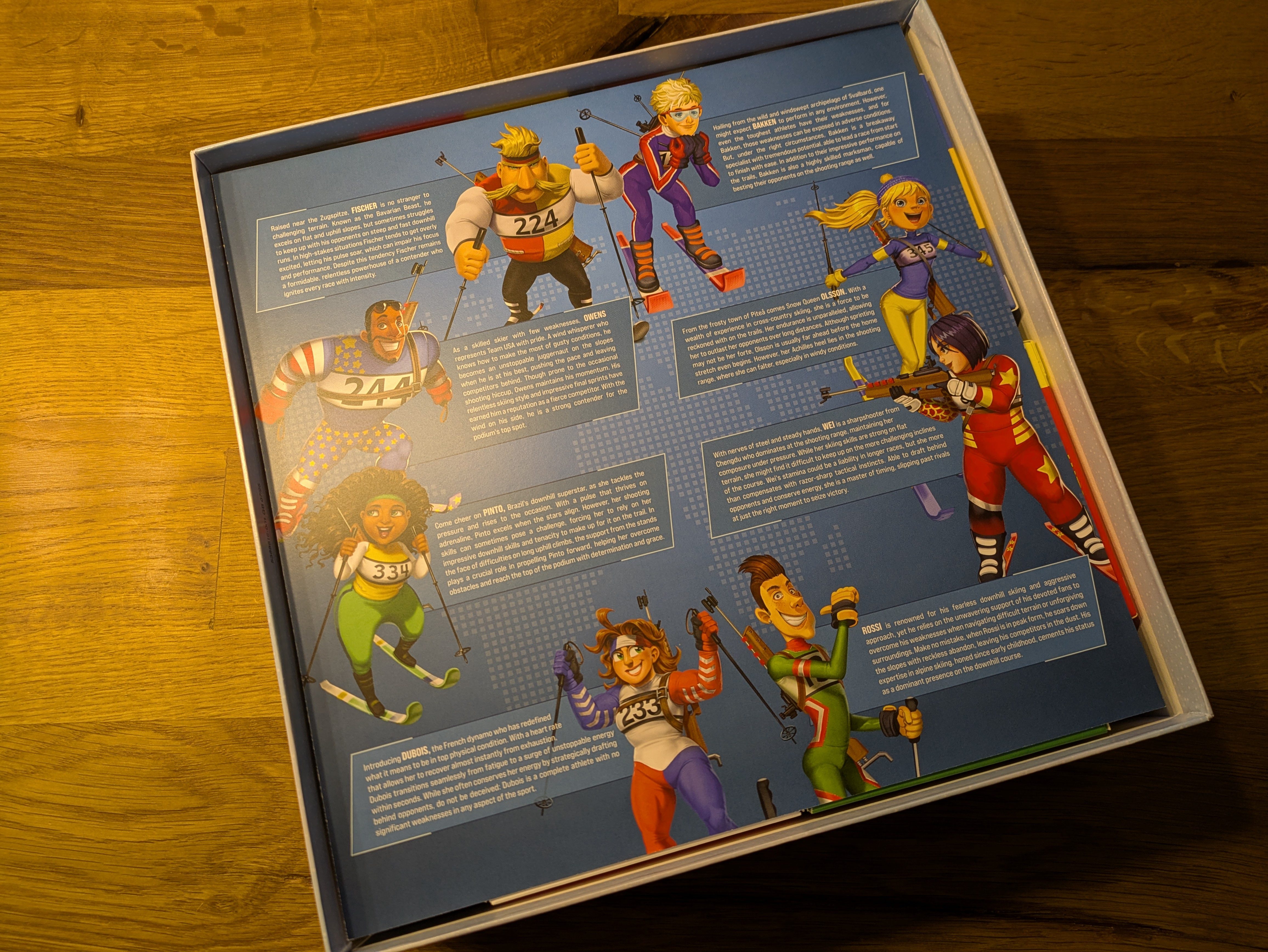 Es gibt insgesamt sechs Spielfarben und acht Athleten/Athletinnen. Letztere beruhen auf echten Personen wie bspw. für Deutschland Sven Fischer. Für Norwegen ist es der kurz vor Weihnachten verstorbene Sivert Bakken dabei. Bei der ein oder anderen Person am Tisch ist das etwas unschön aufgestoßen. Aber wie sollte der Verlag das bei einer Veröffentlichung im Oktober wissen?